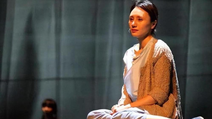 她在排练话剧《赵氏孤儿》时不慎摔落。