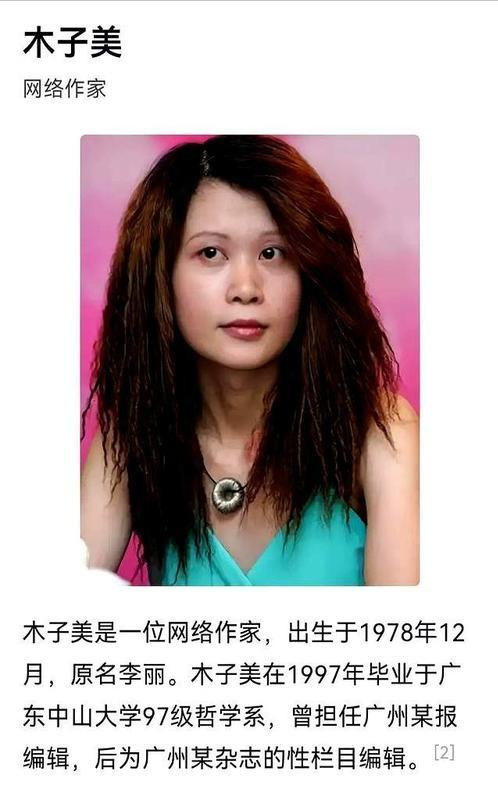 首先,木子美的原名叫李丽,今年47岁,自称是著名作家、杂志编辑。