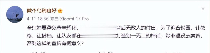 她发表自己的意见可以,但没必要一味吐槽、诋毁全红婵,而且全红婵报警本就是正常行为。